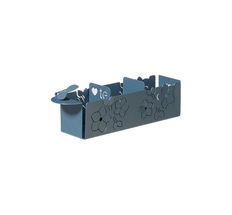 Un porta bustine di tè di design con le tipich forme del fior di lotoi sulle pareti laterali. Diviso in tre scompartimenti di dimensioni regolabili e disponibile in tre colori.