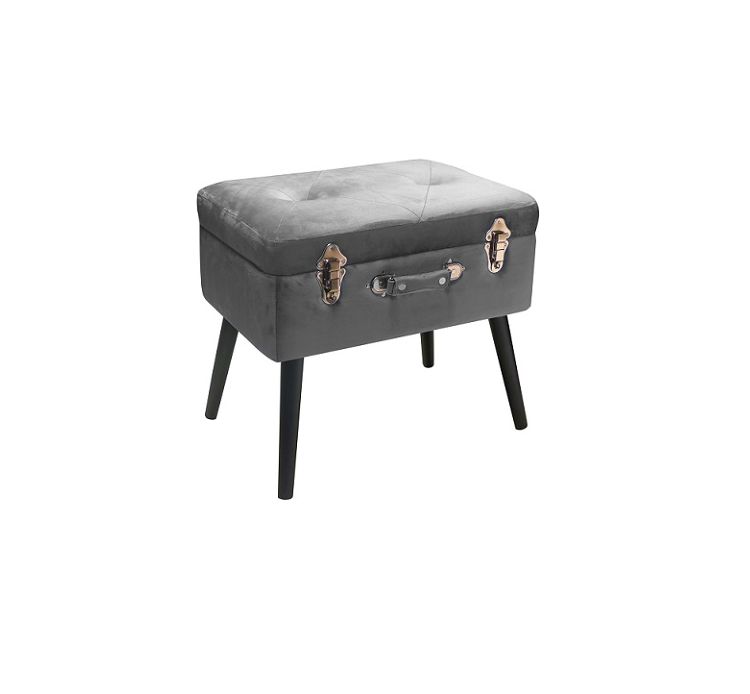 Comodo sgabello si accosta alla perfezione ad ogni stile d’arredamento: la struttura è realizzata in legno MDF, il rivestimento interno in canvas, l'imbottitura in spugna e il tessuto è con effetto velluto (tranne il grigio che può essere anche in tessuto normale).