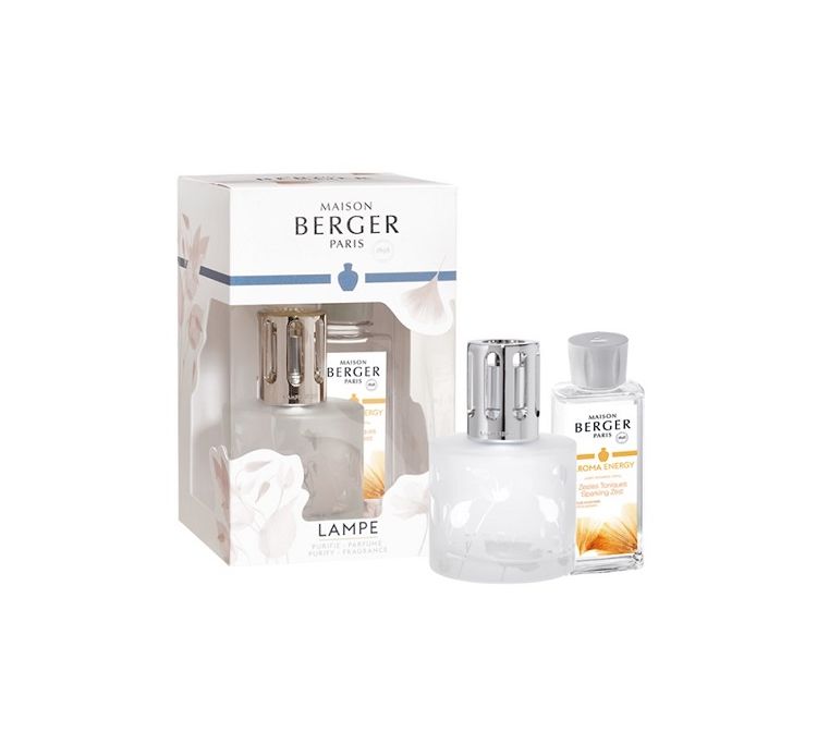 Tags: lampada catalitica, lampe berger, cofanetto regalo, purificazione ambientale, aroma energy, catalysis, perfumer, boxed set,Una forma semplice in vetro smerigliato, con una decorazione floreale in trasparenza. In confezione regalo in cartoncino griffata Maison Berger con un Parfum de Maison 180 ml della profumazione orientale Energy, Zestes Toniques. Un profumo moderno e gioioso per un ambiente dinamico ed energizzante. Uno slancio di agrumi arrotondato da un velo di muschio. Profumo garantito senza coloranti, sviluppato in Francia da maestri profumieri. Capacità: 220 ml