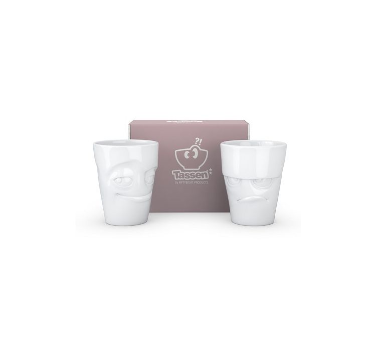 Tags: colazione, mug, tassen, fiftyeight products, happy, 58 products, scontroso, furbo,Per chi vuole una tavola elegante ma originale e allegra allo stesso tempo, per sorprendere gli ospiti con ironia, per servire con un tocco di originalità, queste tazze sono l'ideale. L'eccellente qualità della porcellana permette inoltre di conservare a lungo la temperatura degli alimenti, quindi è perfetta per servire zuppe calde, ma anche insalate, snack, noccioline, patatine, cereali, gelato. corredata di una bella scatola confezione gift, può essere il regalo giusto per la persona speciale della nostra vita, magari a San Valentino, o come simpatico regalo di Natale o come bomboniera. Made in Germany