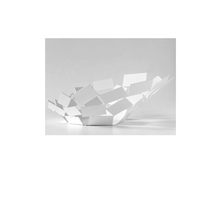 Tags: alessi, acciaio, portafrutta, bianco, stanza, scirocco, centro tavola, mt03w, white, fruit, basket, centrepiece,Fa parte della famiglia “La Stanza dello Scirocco” disegnata dal designer Mario Trimarchi. «“La Stanza dello Scirocco” è una famiglia di oggetti che nasce attorno all’atmosfera astratta e immobile di un luogo magico: la stanza dove si è costretti a stare per ripararsi dall’afa, nelle vecchie grandi case di campagna in Sicilia, aspettando che lo scirocco si plachi. Una stanza senza finestre nella quale non si fa altro che pensare al vento che, fuori, scompiglia le cose del mondo. Ne è risultata una collezione di oggetti dalle geometrie aritmiche, composti da piccole schegge di dimensioni diverse, unite fra loro per punti in equilibrio instabile.» (Mario Trimarchi)