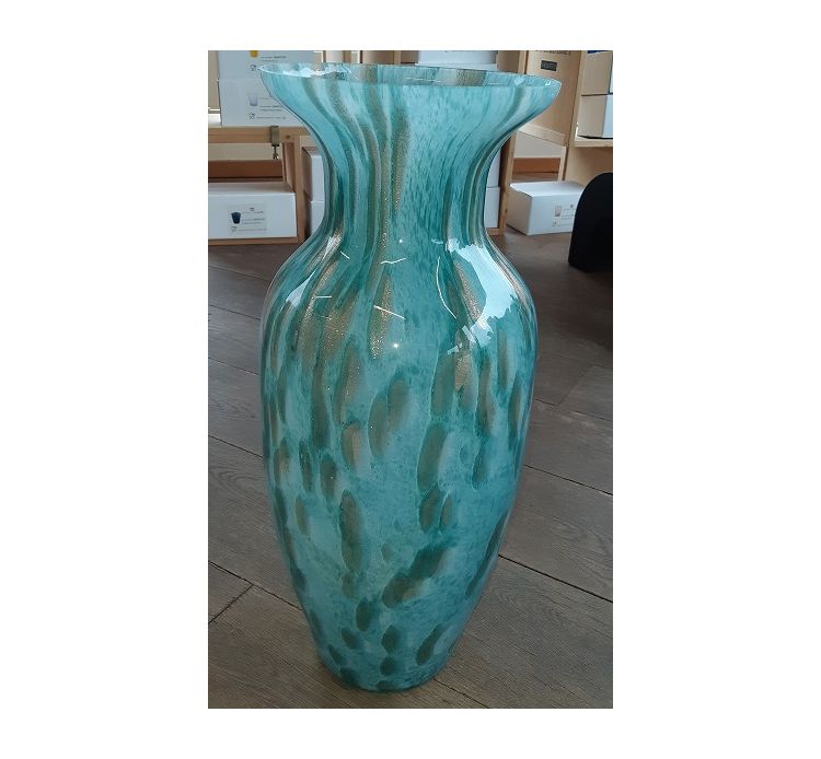 Classico vaso di dimensioni ridotte (d. 8,5 x h.16 cm) ideale per portare dei fiori a fusto corto o per abbellire le vostre vetrine. E' realizzato in vetro borosilicato con fuso al suo interno del vetro bianco con decoro spirale. Usato come bomboniera, viene fornito completo di scatola. Prodotto artigianalmente in Italia: oltre i 20 pezzi, si effettuano dei prezzi offerta (contattateci).