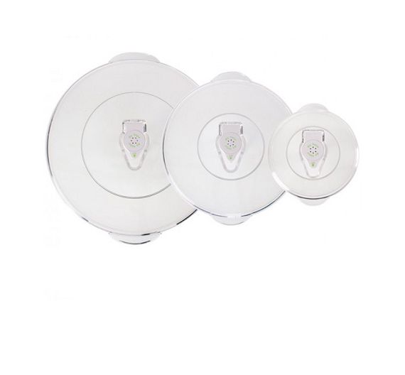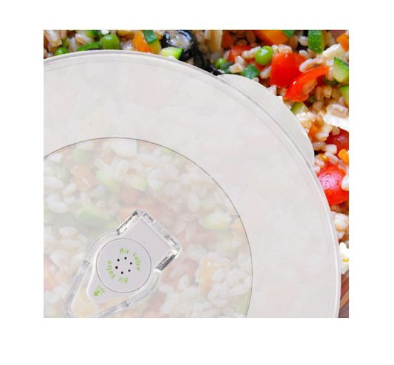 Coperchio universale applicabile a diversi tipi di contenitori per la conservazione sottovuoto. Questo coperchio universale permette di conservare sottovuoto utilizzando contenitori che si hanno già in casa, avendo inoltre il vantaggio di non dover trasferire le preparazioni in un altro contenitore ed evitare cosi di sporcarlo inutilmente.