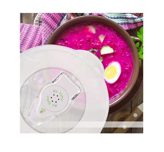 Contenitori per la conservazione sottovuoto, con coperchio dotato di valvola brevettata e guarnizione in silicone. Realizzati con Policarbonato estremamente resistente, sono ideali per conservare praticamente qualsiasi tipo di alimento compresi quelli semisolidi o liquidi, come minestre, verdure tagliate, macedonie di frutta, pasta ecc.