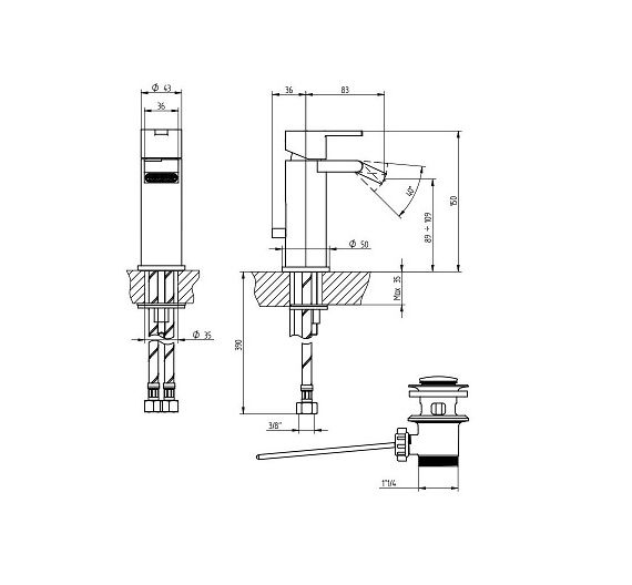 MISCELATORE LAVABO MONOFORO mod. Minù cromo art. 20901 a testa cieca