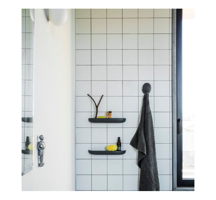 Caos propone il gancio Johnni da appendere sulle pareti del box doccia. In plexiglass è ideale nell'ambiente bagno per appendere asciugamani ed accapatoi.