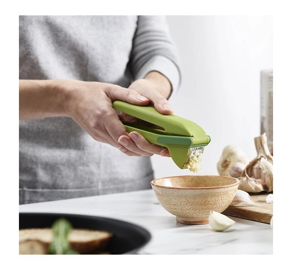 - La lama per la pulizia, azionata da un grilletto, elimina l'aglio tritato
