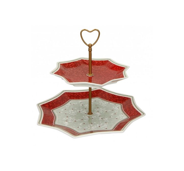 Maggiori dettagliL’alzata stella a due piani Connubio, dai leggiadri decori e le calde tonalità, impreziosirà i tuoi momenti di festa rivelandosi un accessorio pratico, funzionale ed elegante Usala per portare in tavola le tue delizie, grazie al pratico supporto in metallo color oro satinato: allestisci una sala da pranzo scenica ed ospitale, ma anche romantica.