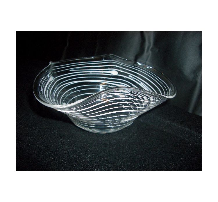 Tags: murano glass, bomboniera vetro, piattino vetro, piattino a fazzoletto, borosilicate, vetro, piattino,La lavorazione artistica del vetro rappresenta una attività caratteristica del Veneto. La sua peculiarità consiste, a differenza della tradizione del vetro di Murano (Venezia), nella lavorazione del tubo di vetro borosilicato, modellato dall’artigiano con la tecnica del cannello a lume fino a fargli assumere qualsiasi tipo di forma. Anche la colorazione a lustro o a pennello è effettuata a mano e poi fissata a forno a 600°C. Il vetro borosilicato ha la caratteristica di essere molto trasparente, robusto e di resistere ottimamente agli sbalzi termici.