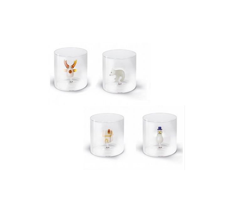 Tags: bicchiere, borosilicato, natale, orso, alce, wd, lifestyle, pupazzo di neve, glass, bear, house, snowman,Set 4 pz composto da un bicchiere per tipo: orso, alce, casetta, pupazzo di neve