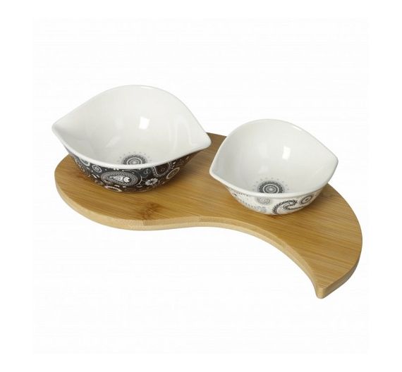 Qualità ed eleganza, sotto forma di antipastiera. L’antipastiera Spicchio di Luna bianca, in porcellana e bamboo, è pronta a confermare un ruolo da “primattrice” tra le antipastiere proposte da BRANDANI. Ideale per stuzzichini, è suddivisa in tre scomparti ed un elemento pronto ad accogliere le 3 forchettine in inox, con pomoli in ceramica.