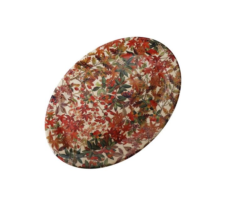 Maggiori dettagliVassoio con decoro Foglie, ramoscelli e piccoli frutti sfoggiano toni tiepidi che vanno dal rosso al verde bosco abbracciando ciotole e vassoi in un concerto di colori che sanno di rinascita, di raccolte, di vendemmie, camini e famiglie.