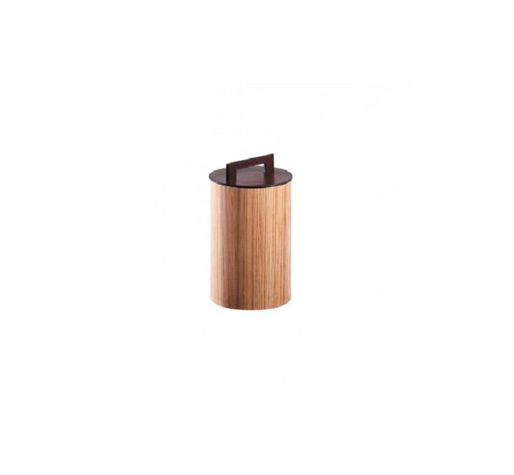 Maggiori dettagliCestino portabiancheria tondo in legno zebrano marrone con coperchio in cuoio, diametro 31,5 cm altezza 65 cm, codice 53382.05