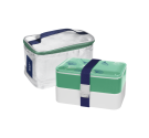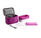Maggiori dettagliA salvaguardia di flagranza e duttilità, questo lunch box si confermerà molto utile: due scomparti separati con coperchio ed inclusi coltello, forchetta e cucchiaio in ABS. Il tutto mantenuto in ordine da una comoda fascia elastica. Include una borsa termica per mantenere più a lungo la temperatura dei cibi.