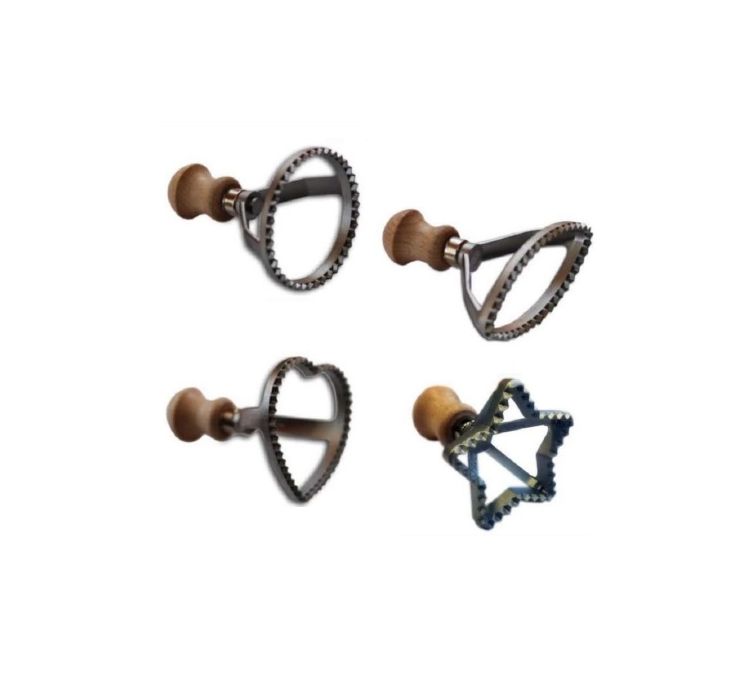Maggiori dettagliTagliaravioli in alluminio satinato, manico in legno di faggio, forme a scelta: