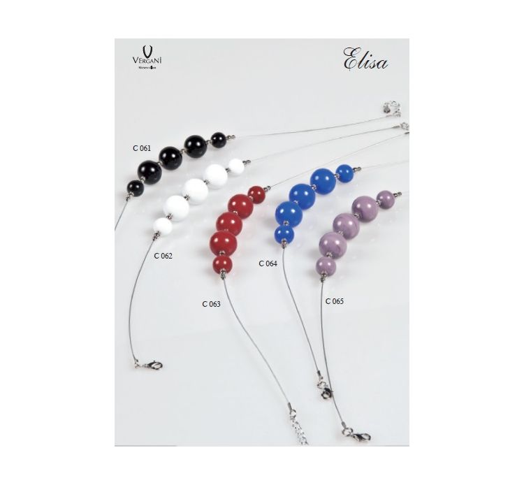 Maggiori dettagliCollana Elisa a un filo acciaio realizzata in perle in pasta vetro di Murano con un design leggero e giovanile: in uno stile tipico della gioielleria tradizionale si affiancano linee di design e tendenza. Lunghezza 43 cm.