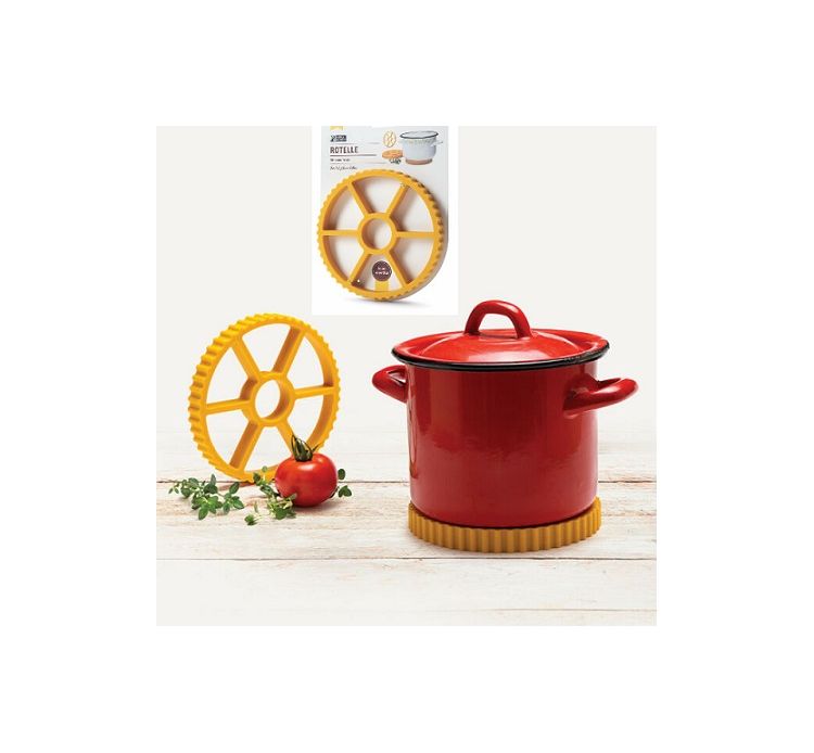 Maggiori dettagliElegante utensile da cucina ideato come poggia pentole, è un sottopentola in silicone che ricorda la pasta che troviamo in tavola: la pastina a forma di ruota
