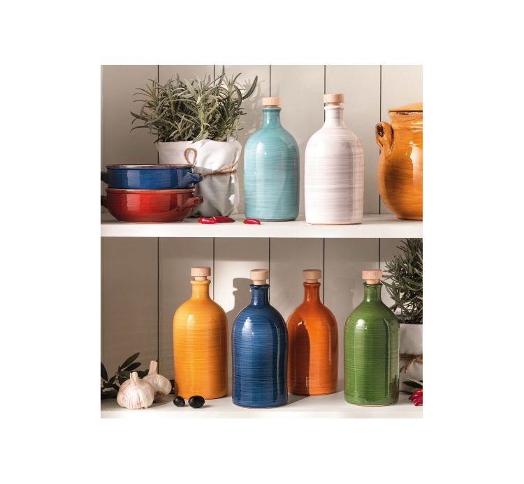 Maggiori dettagliBottiglie in maiolica colorata, con tappo in sughero. Si possono usare come oliere ma anche per altri liquidi. Capacità 500 ml