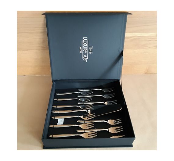Mepra realizza questo set di 6 Forchettine da dessert 'evento' in acciaio inossidabile, con manicatura dal disegno differente per ciascuna forchetta-