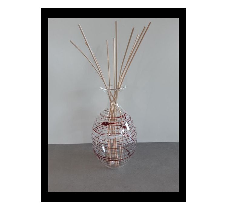 Maggiori dettagliClassico vaso di dimensioni medie (h. 13 cm h.23 cm) ideale per portare dei fiori a fusto corto o bastoncini per la diffusione dei profumi. E' realizzato in vetro borosilicato con fuso al suo interno del vetro bianco e rosso con decoro spirale. Usato come bomboniera, viene fornito completo di scatola. Prodotto artigianalmente in Italia.