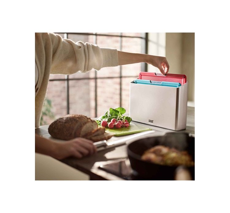 Ogni tagliere ha una superficie ruvida adatta ai coltelli e piedini antiscivolo per affettare, tritare e tagliare a dadini in modo più sicuro. La custodia tiene le schede separatamente consentendo la circolazione dell'aria ed è ideale per la massima organizzazione.