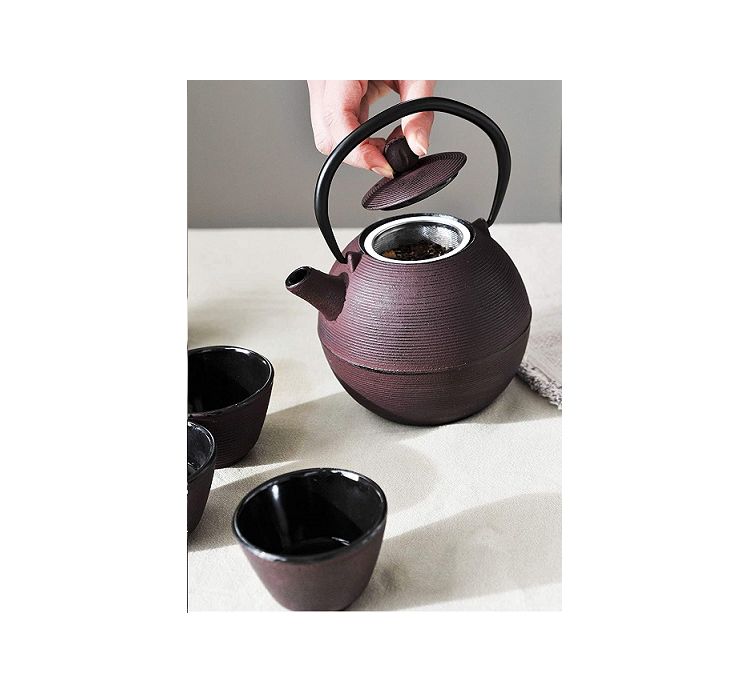 Maggiori dettagliSet teiera con filtro (1000 ml) + 4 bicchieri (50 ml) in ghisa in colore viola con texture a rilievo.