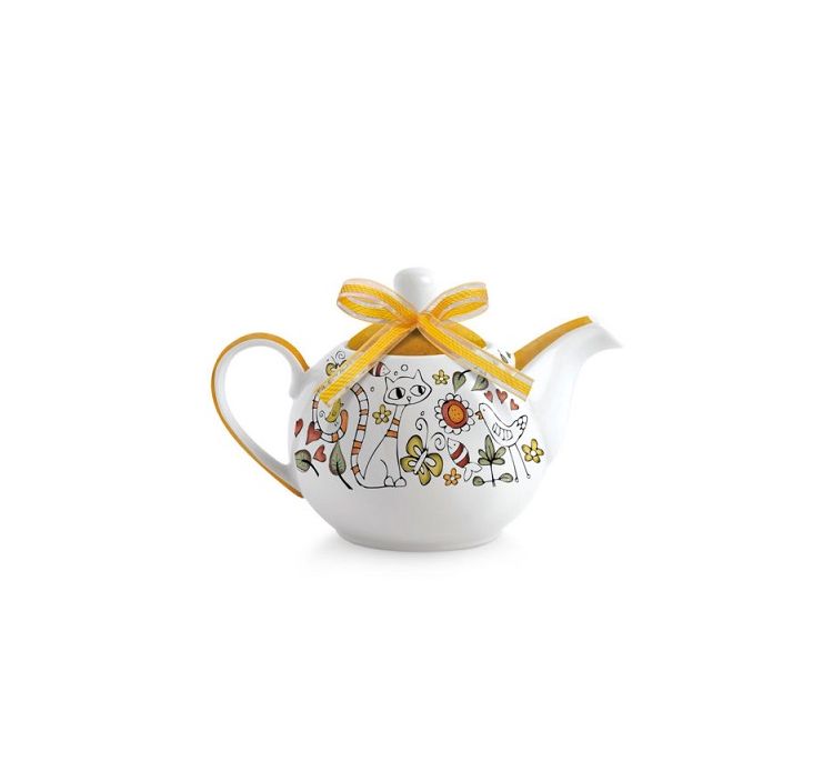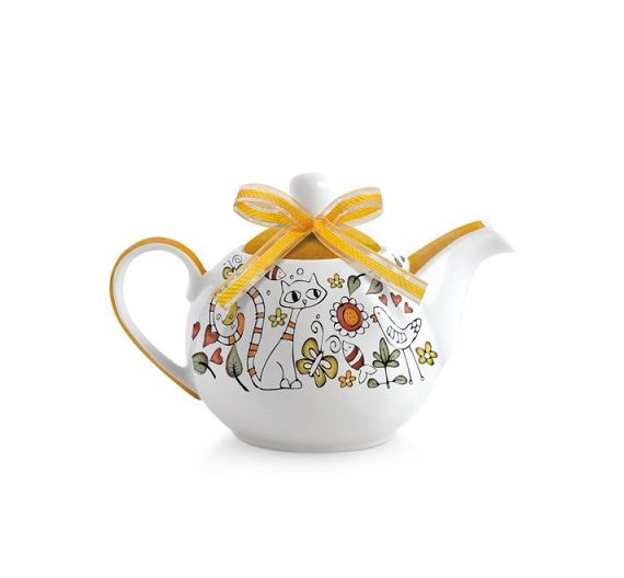 Maggiori dettagliGraziosa teiera in porcellana, capacità 470 ml. Viene fornita in elegante scatola con fiocco decorativo. Si può utilizzare in lavastoglie e microonde