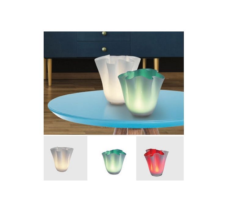 Il vaso viene alimentato all'interno da un sistema a led (comandato da un telecomando), che all’occorenza si può togliere facilmente ed il Vaso da Lampada torna ad essere Vaso !