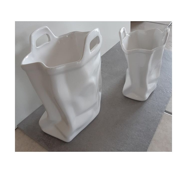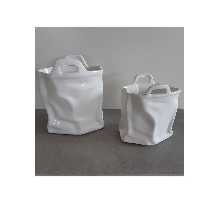 Tags: ceramica, cestino, borsa, vaso, venezia, bassano, white, bag, ceramic, vase, flattened,Vaso stretto piccolo: L=16 cm H= 19 cm p= 13 cm