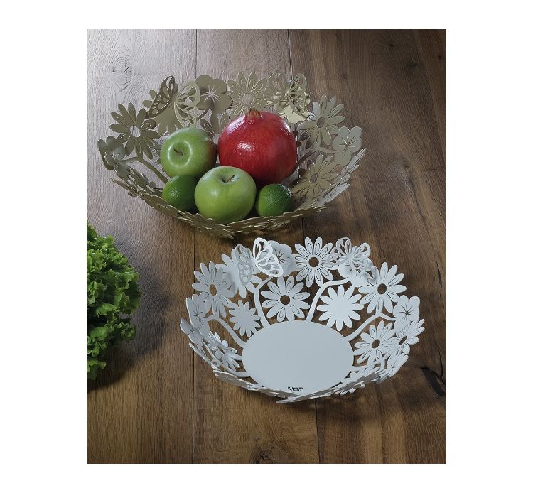Maggiori dettagli- Centrotavola della serie Margherite mod. piccolo sapientemente elaborato da Arti e Mestieri: i fiori stilizzati sembrano emergere dai fianchi, avvolgendolo con un elegante bordo. Le farfalle spiccano il volo dal centrotavola verso la libertà con un effetto tridimensionale unico