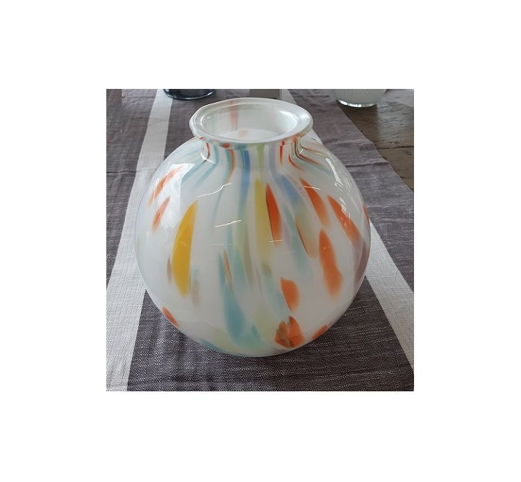 Ciò che contraddistingue questa ditta è la realizzazione di oggetti artigianali realizzati con le più antiche tecniche di lavorazione Muranesi. Vasi, oggetti di design unico e ricercato, vetrofusione artistica decorano la casa con originalità e storia. Prodotto artigianalmente in provincia di Venezia ogni pezzo ha sagome, colori e sfumature sempre leggermente diverse anche se con stesso codice (garanzia di artigianalità)